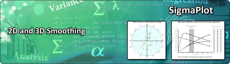 Smoothers is a generic name for a variety of techniques that can be used to either smooth a data set by removing undesired high-frequency components (locations of rapid variation, such as noise contamination), or to resample dependent variable values to other independent variable locations using the values of the data at nearby points. The smoothing methods provided in SigmaPlot operate by weighting the data in a neighborhood of the smoothing location and applying linear or non-linear methods to combine the weighted values to produce a smoothed value. These non-parametric smoothing techniques provide a good complement to the parameterized curve/surface fitting facility (Regression Wizard) in SigmaPlot. For data subjected to measurement errors, noise, etc., either method can be used to predict behavior or to estimate true values.